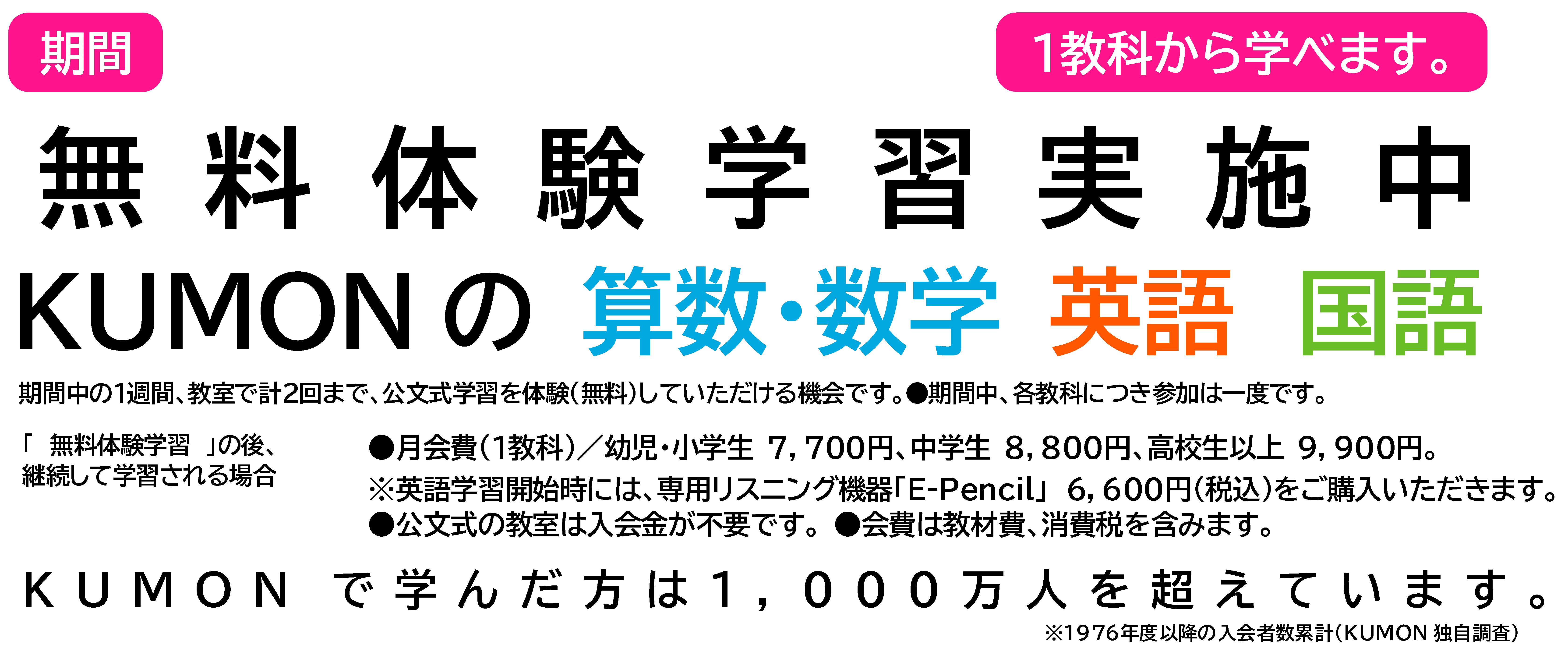当教室では「無料体験学習」を実施します。この機会に公文式学習を体験してみませんか?